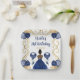 This birthday plate features an elegant gold frame, a beautiful princess with dark skin and a navy blue dress, flowers and a balloon. This is perfect for a birthday party.