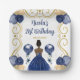 Birthday Party Dark Skin Princess in Navy Blue Paper Plate