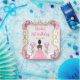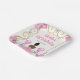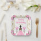 This birthday plate invitation features an elegant gold frame, a beautiful princess with dark skin and a pink dress, flowers and a balloon. This is perfect for a birthday party.