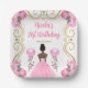 Birthday Party Dark Skin Princess in Pink Paper Plate