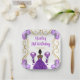This birthday plate features an elegant gold frame, a beautiful princess with dark skin and a purple dress, flowers and a balloon. This is perfect for a birthday party.