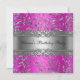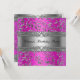 Birthday Party Diamond Hot Pink Floral Silver Invitation