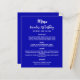 Birthday party dinner menu royal blue white