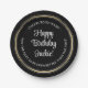 Birthday Party Elegant Black, White and Gold Round Paper Plate