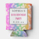 This girly modern typography rainbow bokeh can cooler makes a perfect favour and thank you gift for any birthday party! Personalise with the details of your choice.