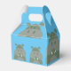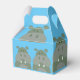 Birthday party fun hippo favour box for the birthday party decoration. A cute decoration design for childrens party fun. The hippo would be great for a zoo theme party or if the child loves the hippo. The background is blue and the hippo in shades of green.