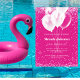A hot pink background. Decorated with pink confetti and white balloons. White text. Personalise and add a name and party details.