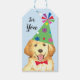 Happy birthday greetings with this cute design featuring a smiling, party hat-wearing Golden Retriever puppy. Text can be easily changed; just click on customise button.