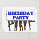 Lovely legs holding a birthday party placard. A delightful birthday party invitation. Change the back to your own party details