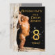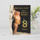 A fun birthday party invitation for the cheeky monkey in your family. A baby orang utan standing on a log and looking upwards.