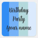 Cool blue stripes pattern with text: Birthday Party and a name template. Fit a maritime style.