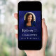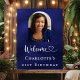 A welcome poster for a 21st (or any age) birthday party. Personalise and add a photo, a name and age. A navy blue, uneven coloured background, and an arch shaped photo frame.