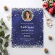 For an elegant 40th (or any age) birthday party. A navy blue, uneven coloured background. Decorated with faux silver confetti. Personalise and add a name and party details. Add your photo into the faux diamond frame. The name is written with a hand lettered style script.