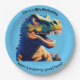 Roaring dinosaur birthday party paper plates. Editable for easy personalisation.