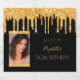 A sparkling wine label for a girly and glamourous 50th (or any age) birthday party. A black background with faux gold glitter drips, paint drip look. Add your own photo of the birthday girl. The text: The name is written with a large modern hand lettered style script. Template for name, age 50 and a date.