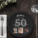 For a 50th (or any age) surprise birthday party. Personalise and add a name, age 50 and a date. Date of birth or the date of the party. Add 3 of your own photos of the birthday man, guy or from his life. Add fun facts, a biography. White and grey coloured letters. A classic black background colour.