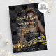 Personalise and add your photo. Deccorated with faux gold music notes. Templates for your party information. Back: black foliage pattern as background.