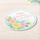 Birthday Party Pineapple Roses Bouquet Pink Yellow Round Paper Coaster