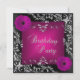 Birthday Party Pink Black Silver Floral Silver Metal Party Girl. Elegant Classy All Occasion Party birthday invites Template