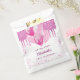 A white background. Decorated with pink faux glitter drips, paint dripping look,glitter drips, pastel pink and hot pink balloons. Personalise and add a date, name and age.