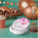 A white background. Decorated with pink faux glitter drips, paint dripping look,glitter drips, pastel pink and hot pink balloons. Personalise and add a date, name and age.