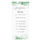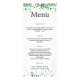 Birthday party program and menu card.  Personalise and add a name, age, date and the menu. A white background. Decorated with green confetti, black text.