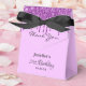 For a girly and glamourous 21st (or any age) birthday party. A chic pink background with trendy purple faux glitter drips, paint dripping look. Personalise and add a name and age 21. With the text: Thank You written with a modern hand lettered style script. Black letters.