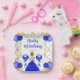 This birthday plate features an elegant gold frame, a beautiful princess with red hair and a royal blue dress, flowers and a balloon. This is perfect for a birthday party.