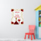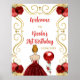 This birthday party welcome sign features an elegant gold frame, a beautiful princess with red hair and a red dress, flowers and a balloon. This is perfect for a birthday party.