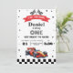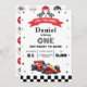 Birthday Party Red Race Car" invitation features a vibrant red race car speeding along a track, perfect for a high-energy birthday celebration. With bold, colourful graphics and fun racing-themed elements, this invitation is sure to excite young car enthusiasts and set the tone for an action-packed party.