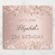 A wine label for a girly and glamourous 21st (or any age) birthday party. A rose gold gradient background with rose gold confetti. Personalise and add a date, name and age 21. The name is written with an elegant hand lettered style script.
