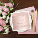A napkin for a girly and glamorous 50th (or any age) birthday party. A rose gold background with rose gold drips, paint drip look. The text: The name is written in dark rose gold with a large modern hand lettered style script. Template for name, age 50 and a date.