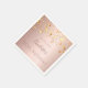 A napkin for a girly and glamourous 50th (or any age) birthday party. A faux rose gold metallic looking background with faux gold stars dripping. Personalise and add a name, age 50 and a date. The text: The name is written in dark rose gold with a modern hand lettered style script.