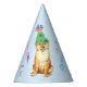 Happy birthday greetings with this cute design featuring a happy, party hat-wearing Shiba Inu puppy surrounded by colourful streamers.