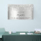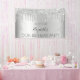 A banner for a girly and glamourous 50th (or any age) birthday party. A faux silver metallic looking background with faux silver glitter drips, paint dripping look. The text: Tempate for a name written in black with a large modern hand lettered style script. Templates for a date and age 50. Perfect both as a welcome banner or as party wall decoration.