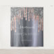 A tapestry for a girly and glamourous 21st (or any age) birthday party. A faux silver looking background with elegant pink and faux silver glitter drips, paint dripping look. The text: The name is written in white with a modern hand lettered style script with swases. To keep the swashes only delete the sample name, leave the spaces or emoji's in front and after the name.  Personalise and add a name, age 21 and a date. Can be used as wall decor for the party or as a photo booth backdrop.