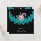 Birthday Party Swan Teal Blue Floral Black Invitation