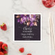 Elegant purple rose gold peonies floral birthday party personalised tableware template napkins, purple and rose gold leaves watercolor peonies dark purple background birthday party napkins
