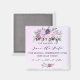 A modern and elegant Save the Date magnet for your milestone birthday celebration. Watercolored violet, lavender background, black text. Decorated with violet and purple flowers. Personalise and add a date and name. The text: Save the Date is written with a large trendy hand lettered style script.