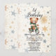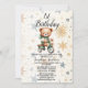 Birthday Party Watercolor Teddy Bear Green Bike Invitation