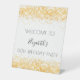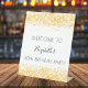 Birthday party white gold glitter dust welcome pedestal sign