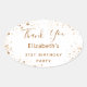 Birthday Party white gold glitter name Thank You Oval Sticker
