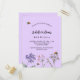 A violet, lavender coloured background. Decorated with bees and painted wildflowers in violet and pink. Personalise and add a name and party details.