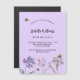 A violet, lavender coloured background. Decorated with bees and painted wildflowers in violet and pink. Personalise and add a name and party details.