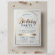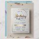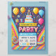 The "All-in-One Birthday Party Invitation" design features a vibrant and festive layout with colourful balloons, confetti, and a birthday cake illustration. The top showcases playful text inviting guests to the celebration, while the bottom section provides space for essential details like the date, time, venue, and RSVP information. With a bright and cheerful background in gradient tones, this card is perfect for creating excitement and setting a joyful tone for the upcoming party. Ideal for kids' celebrations or any fun-filled birthday event!