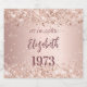 A bottle label for a girly and glamorous 50th (or any age) birthday party with the girls. A rose gold background with an elegant faux rose gold confetti. The text: The name is written in dark rose gold with a large modern hand lettered style script. Personalize and add a date, name and year of birth.