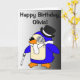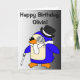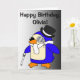 Cheerful, happy Birthday card of a Cute Baby Penguin in black and white color, looking snazzy and posh!