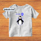 A t-shirt with a special design for a three year old. All kids love penguins, and this one is holding a blue third birthday balloon in its beak. The text is customisable, or you can keep the suggested "I AM THREE".