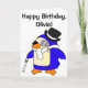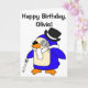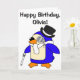 Cheerful, happy Birthday card of a Cute Baby Penguin in white color, looking snazzy and posh!