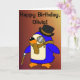 Birthday Penguin Tanned Leather Brown Customizable Card
